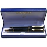 Waterman Exclusive Lacquer Black Gold Trim Medium Point Fountain Pen & Ballpoint Set